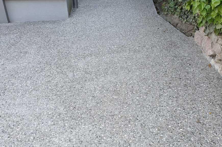 Ce béton avec dhérence et large gamme de textures. Souvent utilisé pour les parkings, les entrées, parcs.